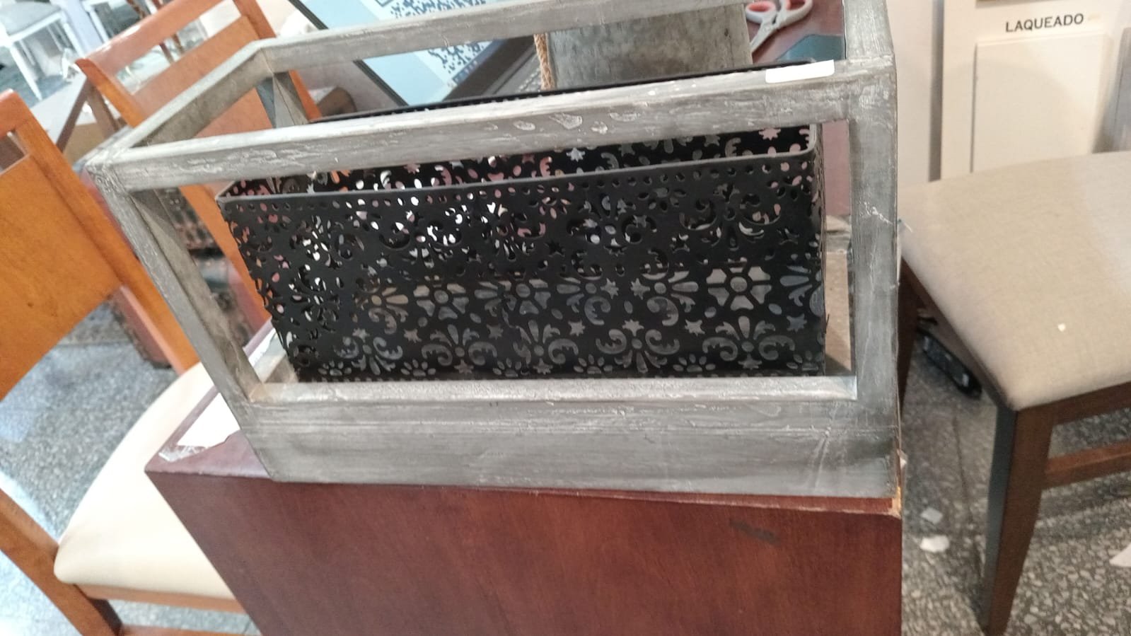 PORTAVELAS MADERA Y CHAPA CALADA