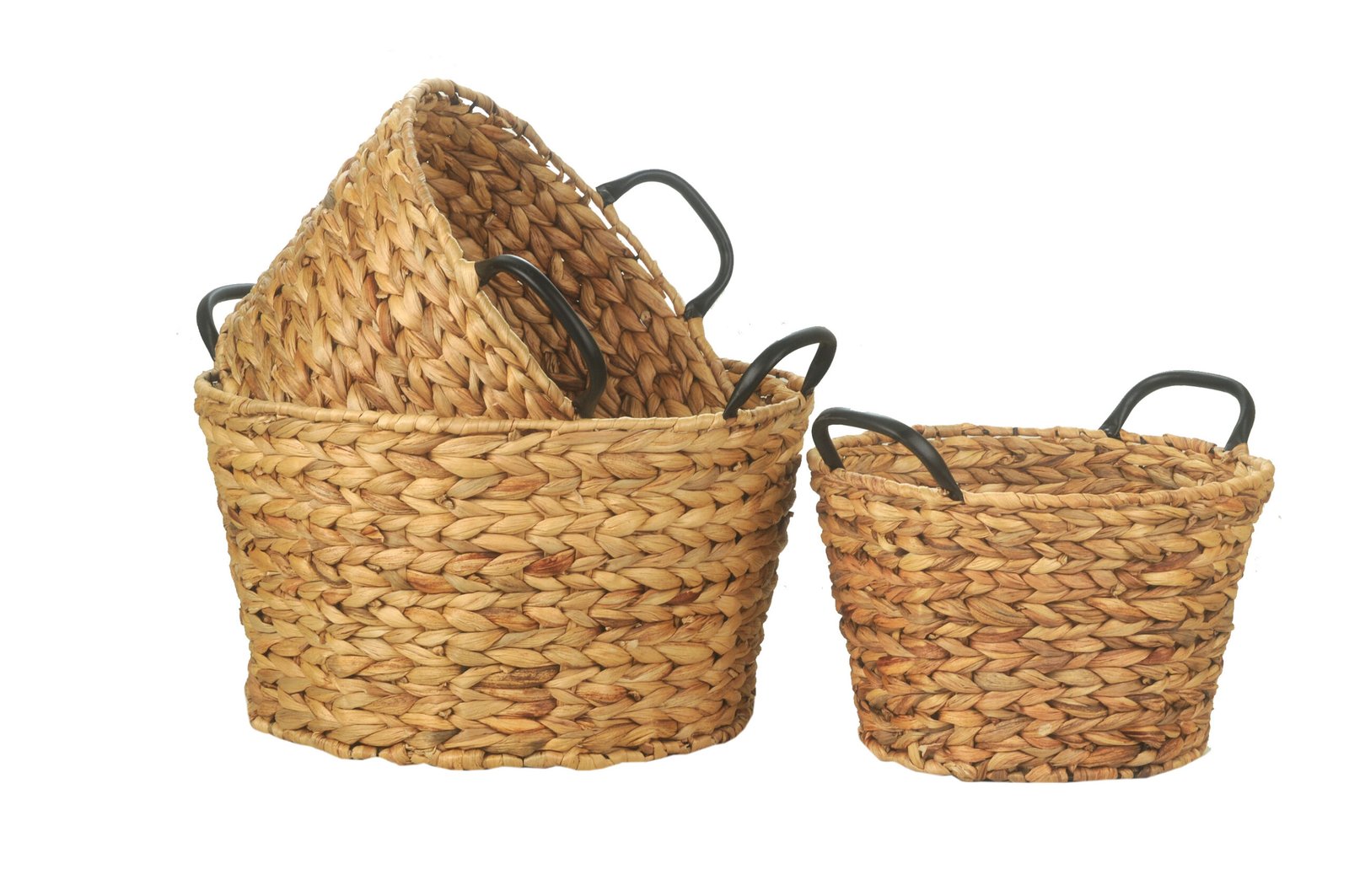 SET X 3 CANASTOS JACINTA CON MANIJA DE HIERRO